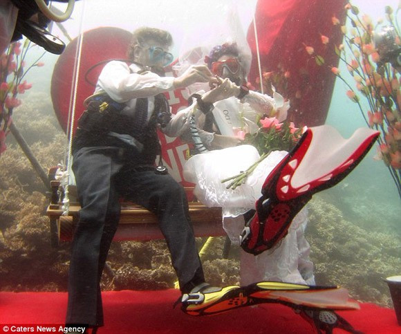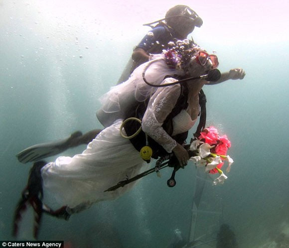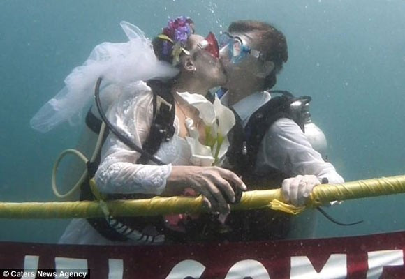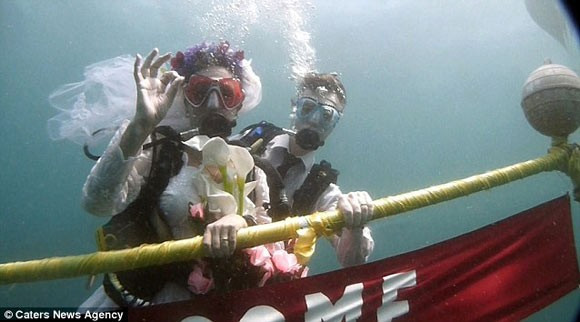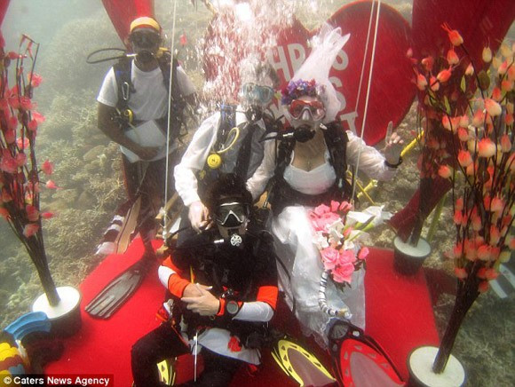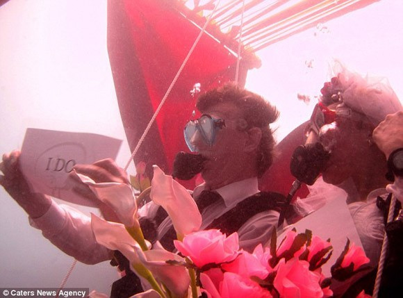 Chris (63 tuổi) và Janet Wright (58 tuổi, đến từ Cottingham, Yorkshire, Anh) đã quyết định chọn vùng biển ở quốc đảo Maldives là nơi diễn ra ngày trọng đại của mình. Tuy nhiên, không đơn giản là một đám cưới trên thuyền, cặp đôi này nảy tổ chức hôn lễ ngay dưới biển.