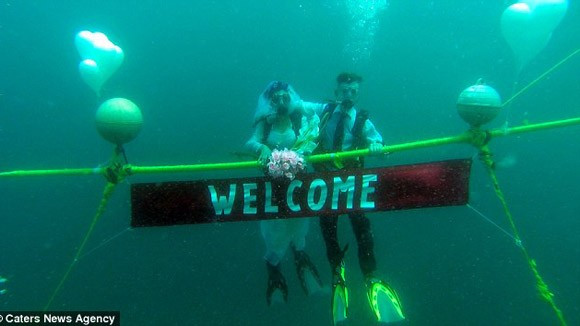 | Cặp đôi quyết định ghi dấu ngày trọng đại dưới biển sâu. |