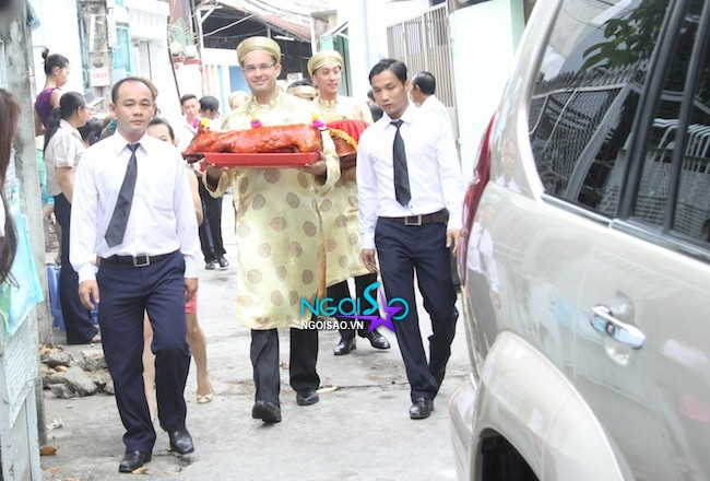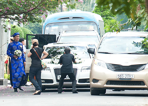 | Đoàn rước dâu tới đón Tăng Thanh Hà. |