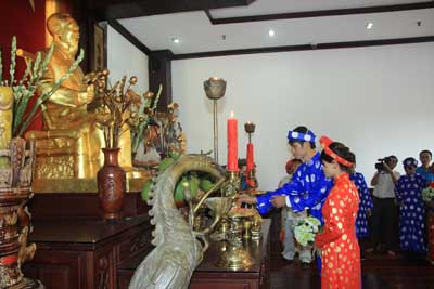 Cặp đôi dâng hương Chủ tịch Hồ Chí Minh tại Bảo tàng Hồ Chí Minh