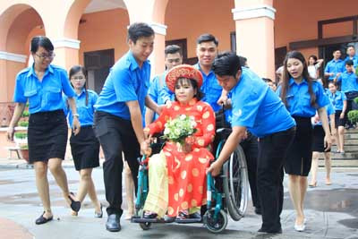 Các bạn Hội viên Hội LHTN VN Quận Đoàn 10 giúp đỡ di chuyển cặp đôi khuyết tật