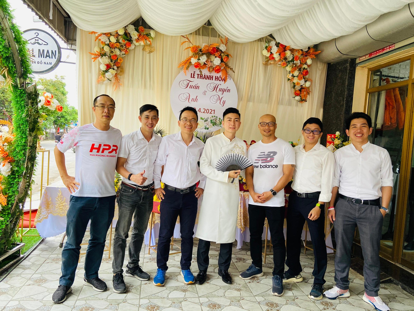 | Chứng kiến những hình ảnh đẹp này, rất nhiều runner đã gửi lời chia vui và chúc phúc hạnh phúc tới Tuấn Anh và Huyền My. Anh Trần Nam (thứ hai từ trái sang), một thành viên của HPR bày tỏ: "Hôm nay khác với race, khác buổi tập hàng ngày, hôm nay em đã thực hiện những bước chạy... cuộc đời. Những bước chạy để đón người bạn đời về bên mình. Chúc hai em trăm năm hạnh phúc". |