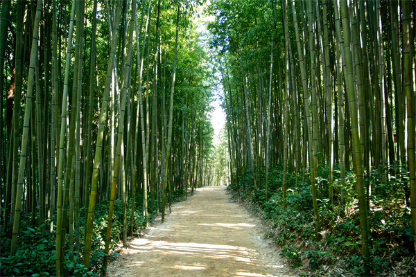 Những cây tre ở đây mọc cao vút, thẳng tắp và dày đặc, xen kẽ nhau tạo cho cả khu rừng có một màu xanh ngọc bích tuyệt đẹp. Không khí trong rừng lúc nào cũng mát mẻ, thư thái. Khu rừng còn nổi tiếng với những đường đi bộ tự nhiên xanh mát đẹp mê hồn.