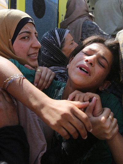 Abdullah đau khổ ôm lấy thi thể một trong hai con trai vào lòng. Ảnh: EPA.