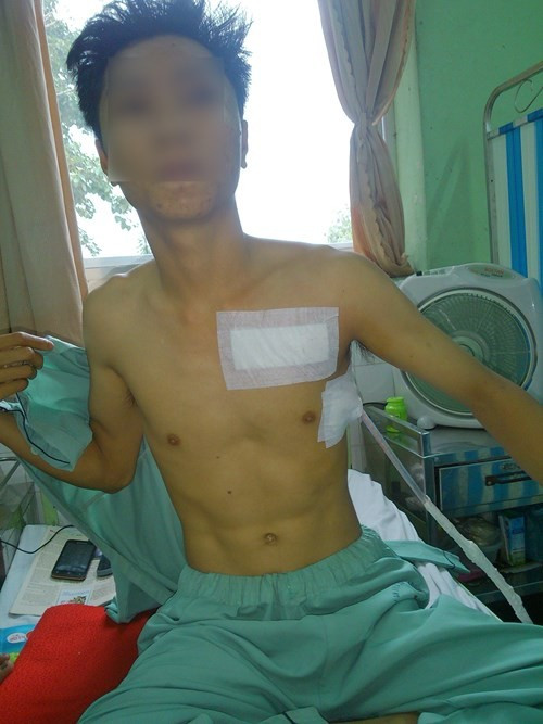 Lúc này Nhàn cầm dao Thái Lan lao vào đâm một nhát vào ngực Tâm gây thương tích nặng.