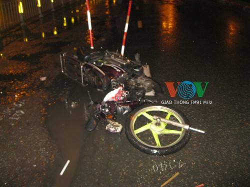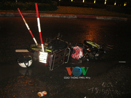 Cú tông cực mạnh khiến xe máy gãy lìa phần đầu. Anh Quang bị thương nặng và được người dân nhanh chóng đưa vào bệnh viện cấp cứu nhưng nạn nhân đã tử vong.
