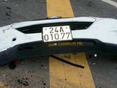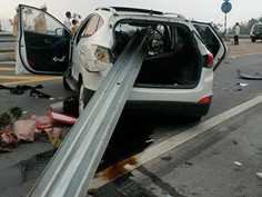 Cú đâm mạnh khiến thanh chắn bằng thép của dải phân cách bật ra và đâm xuyên mui trước, qua kính chắn gió và ra cửa sau xe.
