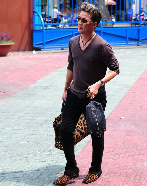 Để thể hiện tinh thần ton sur ton đúng điệu, Đàm Vĩnh Hưng tốn khá nhiều thời gian và tiền của để sưu tập những phụ kiện có cùng sắc màu và chất liệu da.