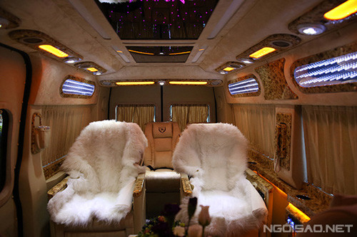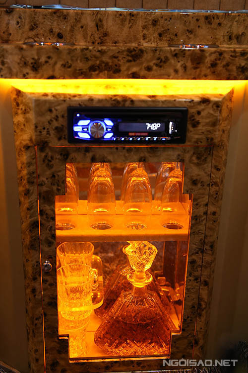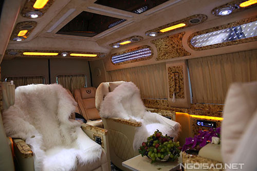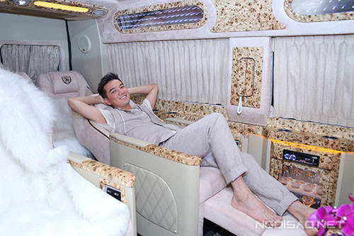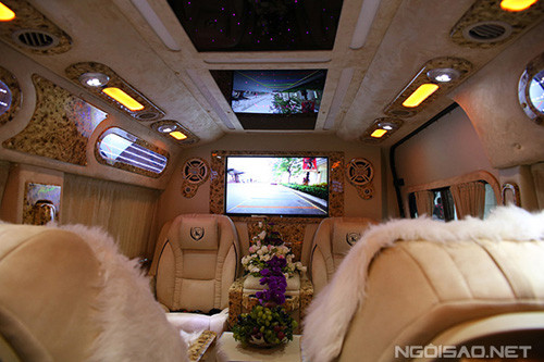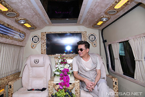 Bên trong chiếc xe của Đàm Vĩnh Hưng được thiết kế, trang trí như một căn phòng ở khách sạn hạng sang.