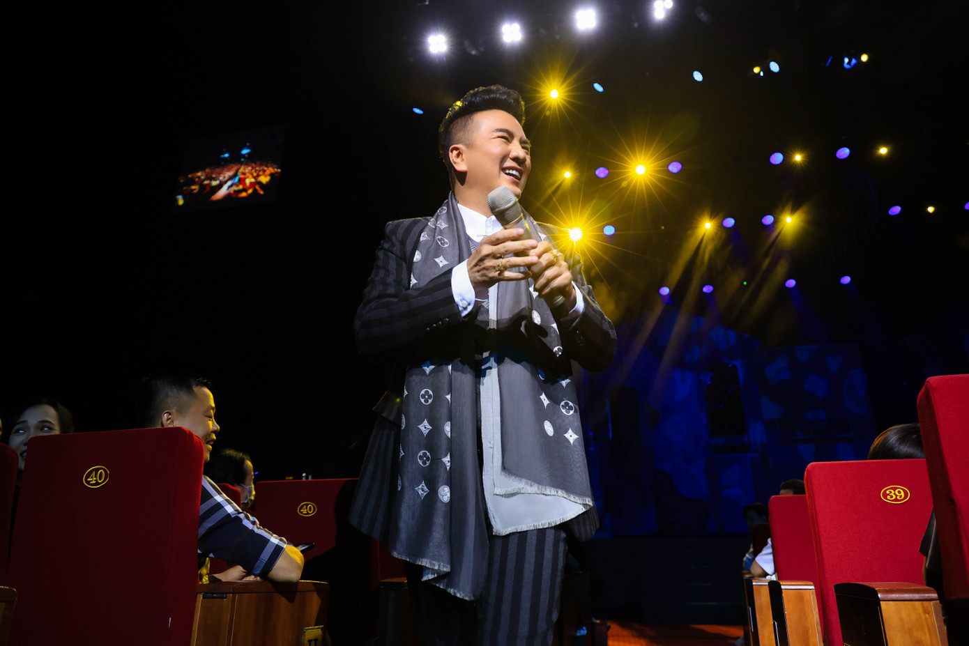 Trên sân khấu, Dương Triệu Vũ bày tỏ sự ngưỡng mộ tinh thần cống hiến và hết mình vì khán giả của Đàm Vĩnh Hưng.