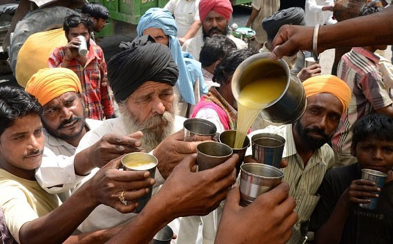 Tình nguyện viên phát nước ngọt cho người dân tại thành phố Amritsar, bang Punjab. Ảnh: Getty.
