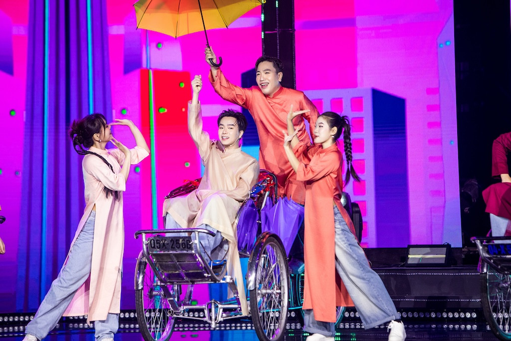 Với giai điệu và lời ca dễ thương, sân khấu được dựng hoạt cảnh đông vui, náo nhiệt lột tả không khí phố xá tấp nập những ngày cuối năm. Lúc này lòng ai cũng tràn đầy sự hân hoan và hứng khởi để chuẩn bị đón chào một năm mới với nhiều ước vọng. Bốn nam ca sĩ trong trang phục áo dài rực rỡ sắc màu, ngồi xích lô du xuân và mang đến những giai điệu sôi động.