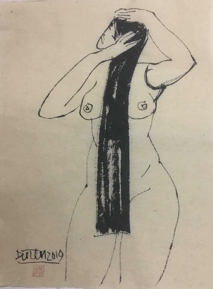 Đặng Tiến quan niệm thế nào về phụ nữ đẹp? Dưới con mắt của họa sỹ, phụ nữ đẹp không phải ở “chỉ số vàng”, quan trọng là nét duyên ở nàng ấy. Mà nét duyên chỉ có thể cảm, khó có thể phân tích rạch ròi. Về điều này, Đặng Tiến gần ca dao Việt “Một thương tóc bỏ đuôi gà/Hai thương ăn nói mặn mà có duyên/Ba thương má lúm đồng tiền/Bốn thương răng nhánh hạt huyền kém thua”. Đàn bà trong tranh Đặng Tiến có duyên không? Câu trả lời tùy thuộc cảm nhận của mỗi “thượng đế”. Nhưng chắc chắn một điều, nude Đặng Tiến có “chất” riêng, đọng ấn tượng. Không phải những bức nude đèm đẹp, ngắm một lần, lại lạc lối quên.