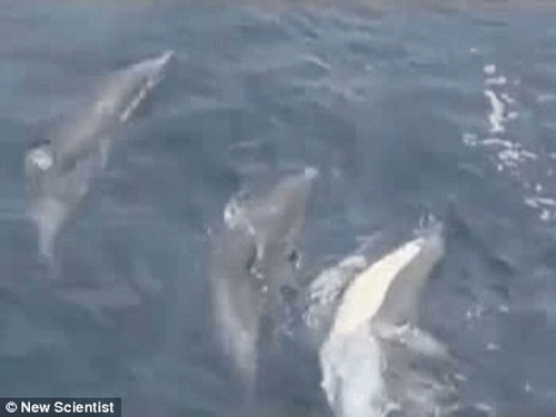 Đoạn phim cho thấy một con cá heo cái đang bơi lảo đảo do phần vây bị tê liệt. Ngay lập tức, những con cá heo khác tập trung dày đặc quanh con cá heo bị thương, lặn xuống dưới để giữ "bạn" không bị chìm.