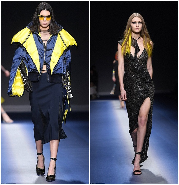 Cô nàng 21 tuổi Kendall Jenner diện áo phao xẻ tay còn Gigi Hadid diện đầm xẻ cao gợi cảm.