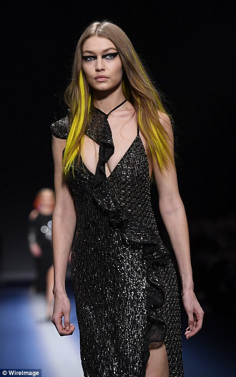 Em gái của Gigi là Bella Hadid cũng có mặt trong show của Versace.