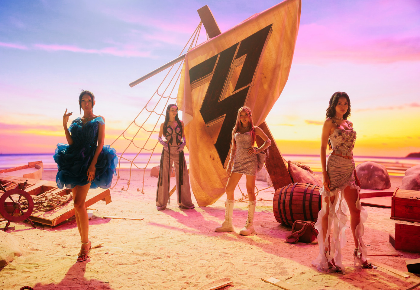 | Người mẫu Hà Kino hóa "tổng tài" bên cạnh Huyền Baby, Quỳnh Nga và Phương Vy. |