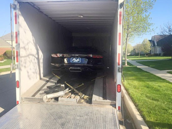 Chiếc Lamborghini Aventador được vận chuyển bằng container.