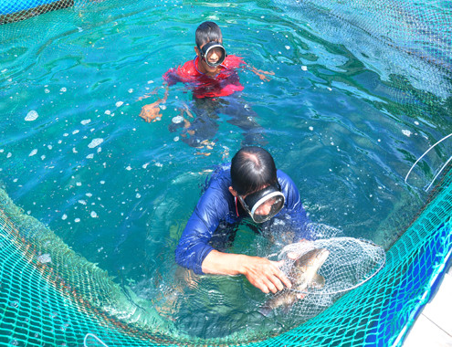 Song hành với nuôi tôm hùm, một số ngư dân còn nuôi thêm cá mú, bớp để cải thiện thêm thu nhập.
