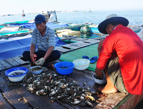 Không chỉ đầu tư tiền tỷ đóng lồng bè, mua con giống, ngư dân Lý Sơn còn phải tốn thêm khoản tiền lớn mua thức ăn nuôi tôm hùm trưởng thành.