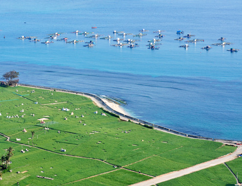Nhìn từ đỉnh núi Thới Lới, có gần 40 lồng bè nuôi tôm hùm của ngư dân huyện đảo Lý Sơn tập trung tại đây. Từ mô hình nuôi tôm hùm xuất khẩu thành công của gia đình anh Nguyễn Ngọc Hiệp (ngụ thôn Tây, xã An Vĩnh), nhiều hộ dân nơi đây đã mạnh dạn bỏ ra từ một đến 1,5 tỷ đồng đóng lồng bè, mua tôm hùm giống tận dụng ưu thế biển đảo phát triển kinh tế gia đình.