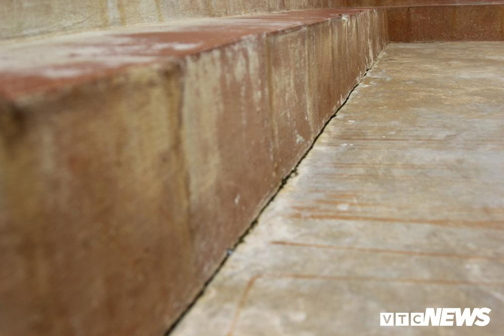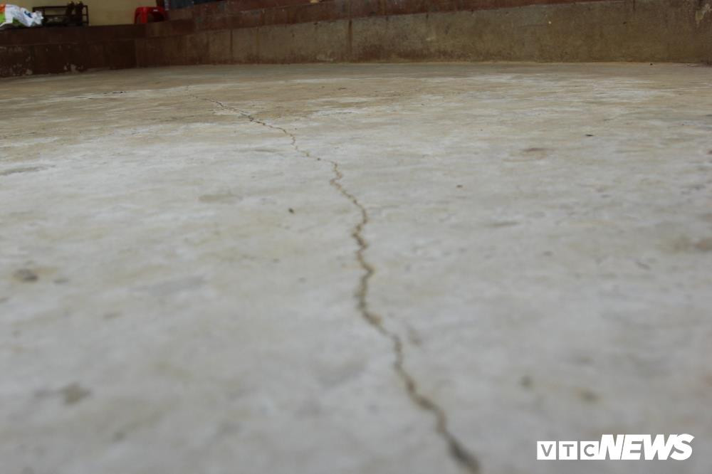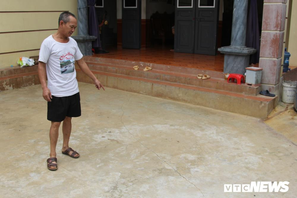 Cách nhà anh Hào khoảng chục mét, nền sân căn nhà 2 tầng của gia đình ông Vũ Văn Bình cũng bị rạn nứt lớn hơn cùng thời điểm khi nhà anh Hào bị sụt lún.