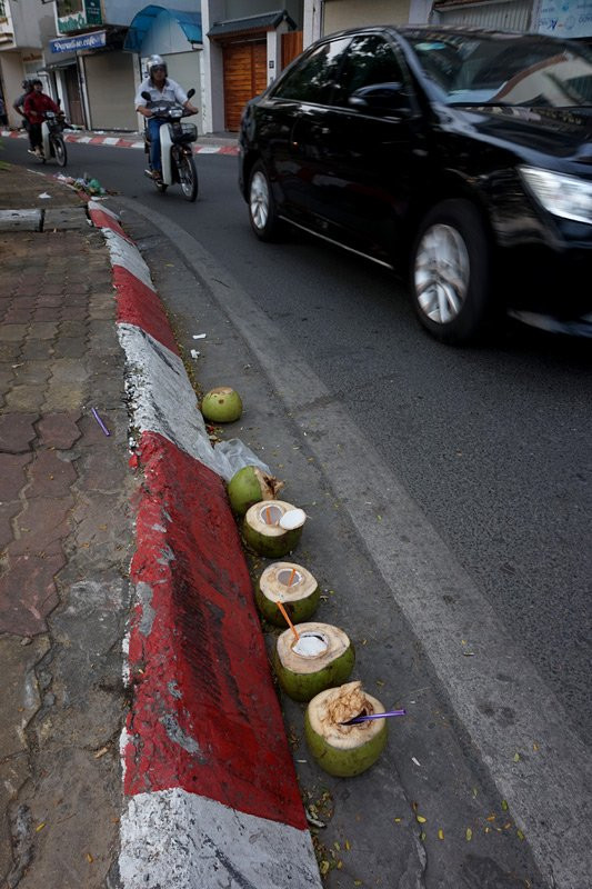 Mỗi buổi sáng, hàng trăm người dân đạp xe rèn luyện sức khỏe quanh con đường ven Hồ Tây. Trên vỉa hè là những gì còn lại sau bữa nhậu của nhóm người nào đó.