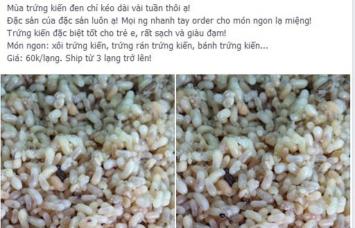 Đặc biệt là cậu con trai 4 tuổi còn bị nghiện món trứng kiến nấu xôi và làm trứng rán, ngày nào cũng đòi ăn". Theo lời chị Hằng, mấy năm gần đây, cứ sau Tiết thanh minh, gia đình chị lại tìm mua trứng kiến gai đen mặc dù mỗi cân cũng ngót triệu bạc.