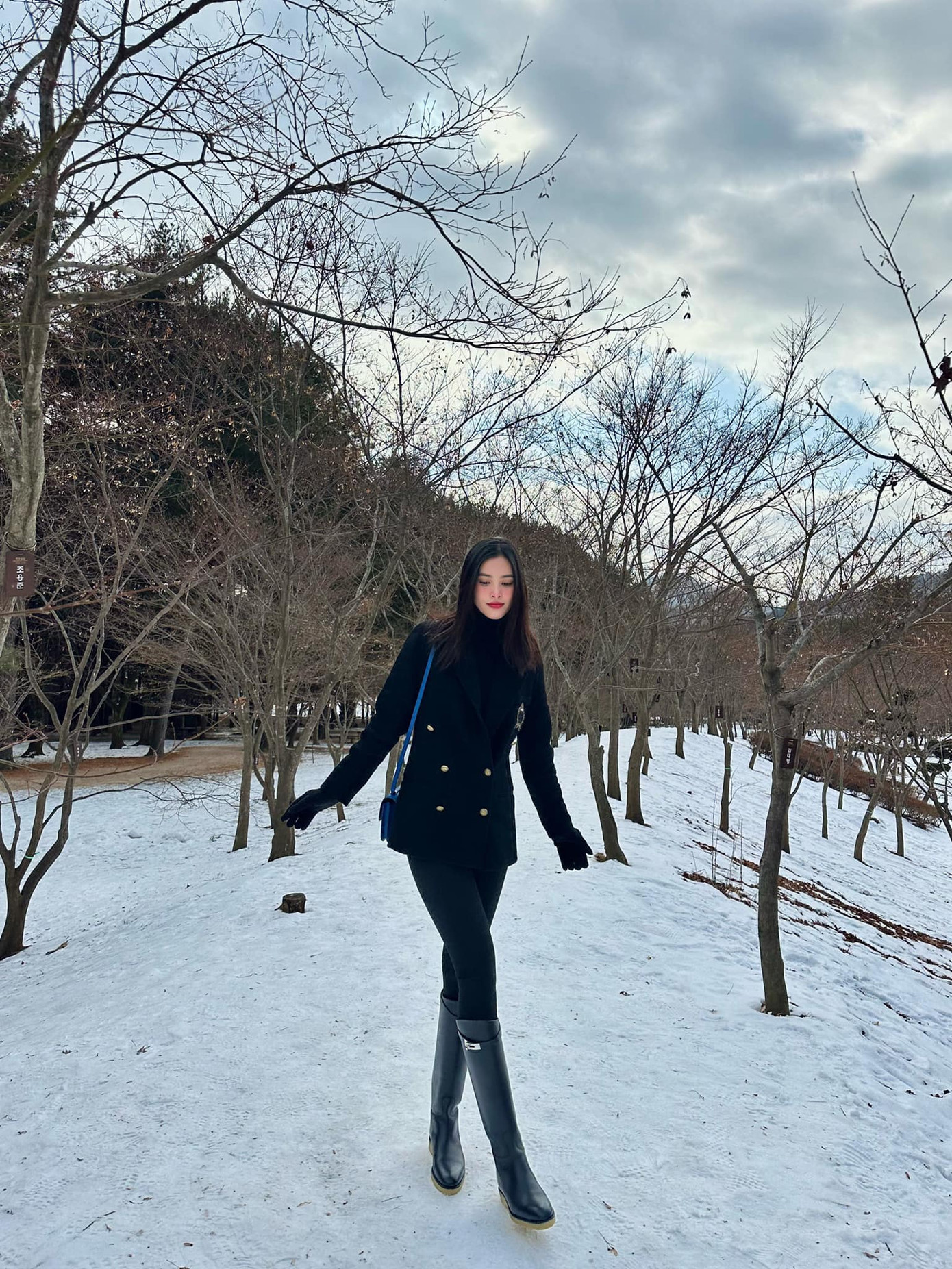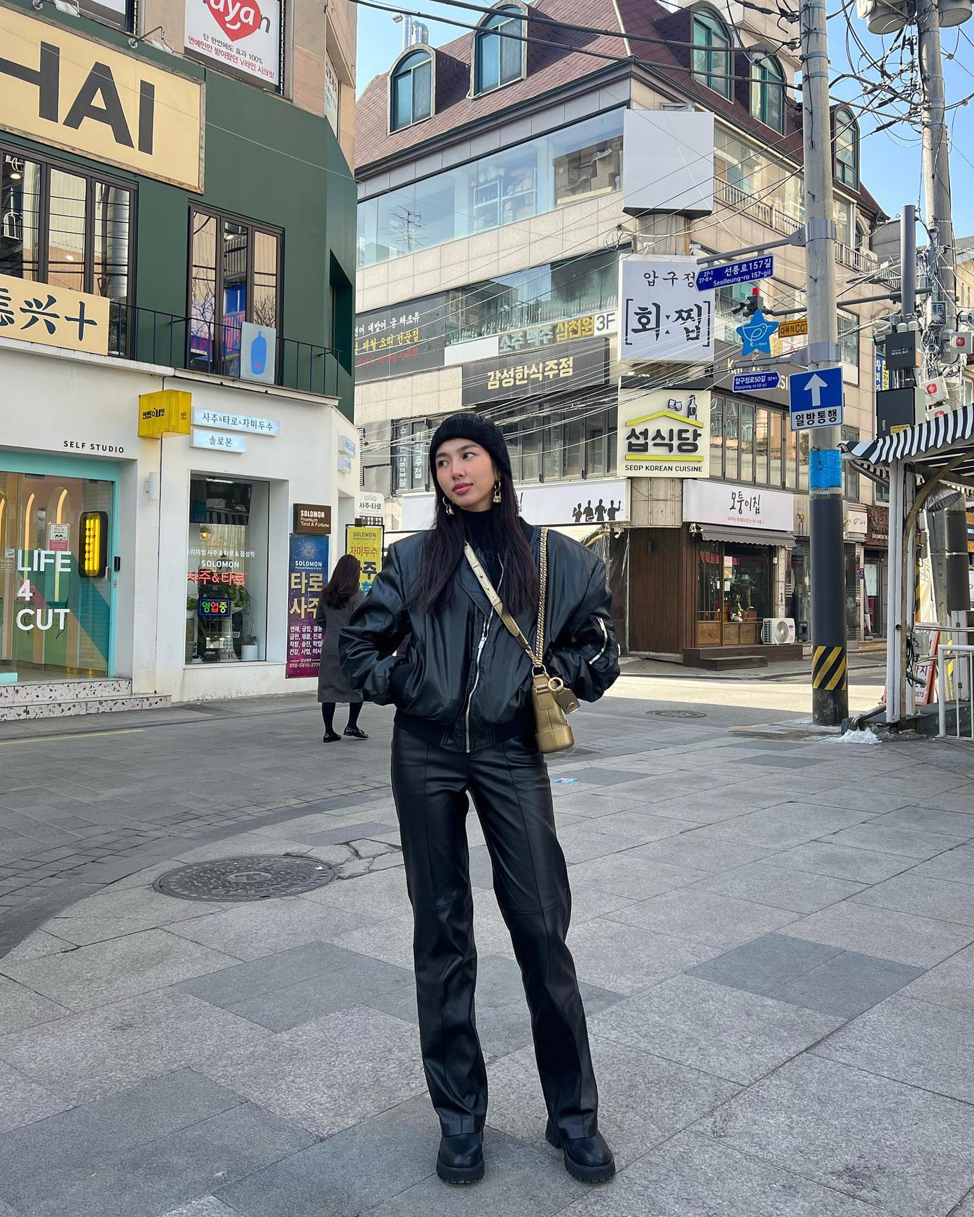 Trùng hợp thay, Hoa hậu Tiểu Vy cũng đang có mặt tại Hàn Quốc nhưng dường như người đẹp không đi cùng Thùy Tiên. Tiểu Vy cũng chọn phong cách đơn sắc với trang phục đen đồng điệu, toàn những món đồ cơ bản nhưng cực sang.