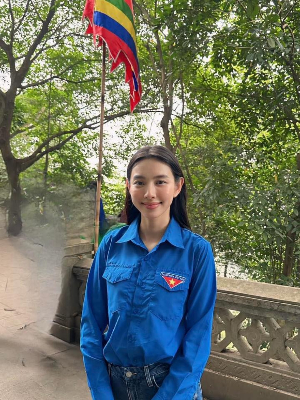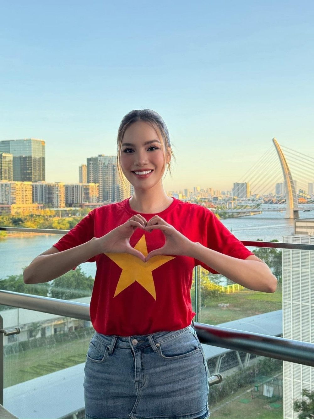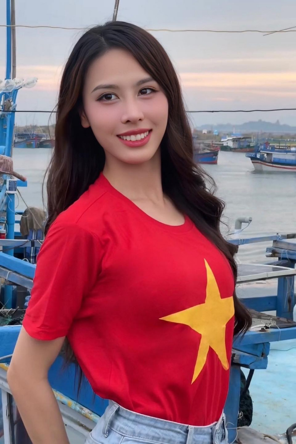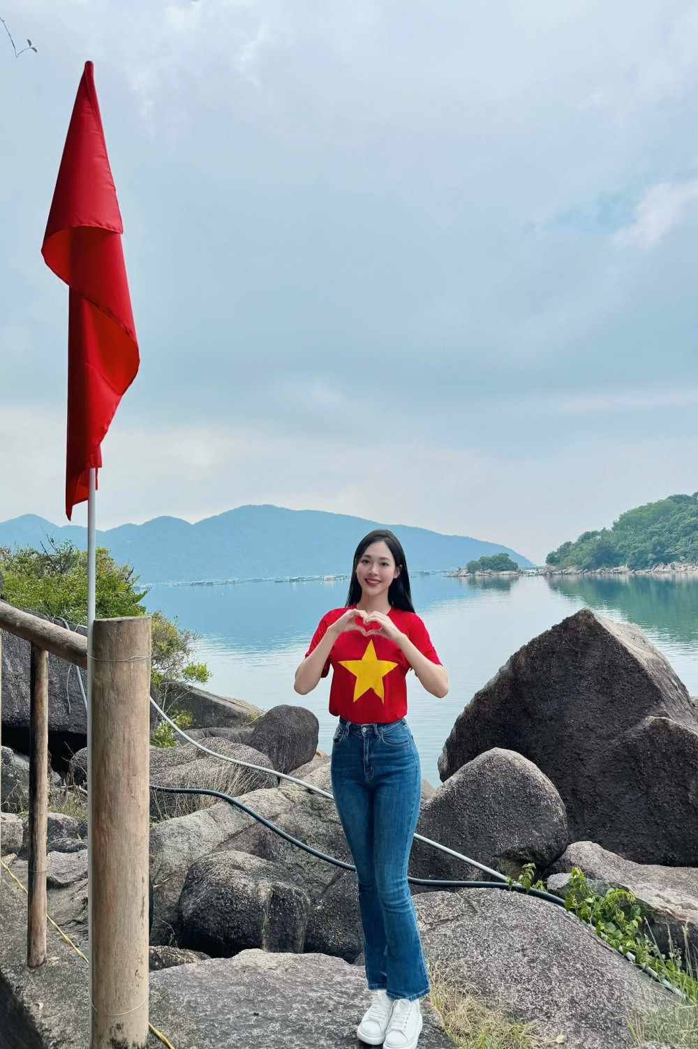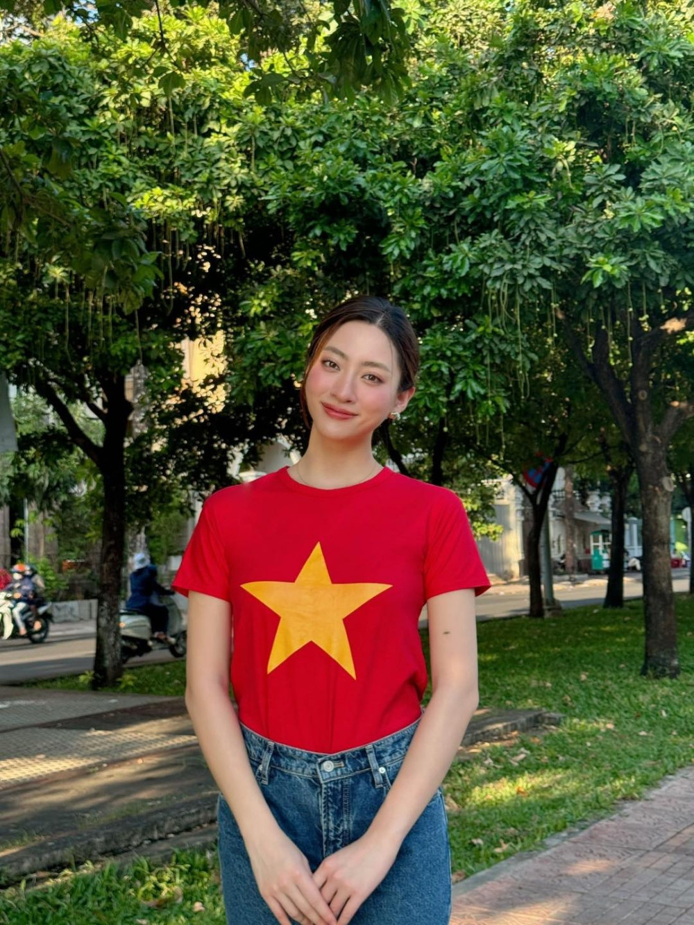 Bên cạnh áo dài, không ít nàng hậu chọn trang phục áo thun cờ đỏ sao vàng.