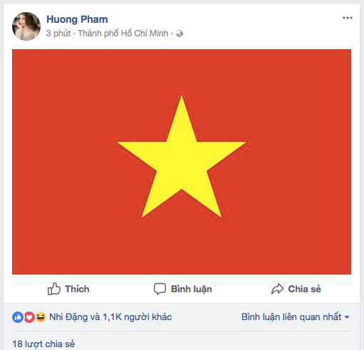 Hoa hậu Phạm Hương đăng ảnh hình cờ tổ quốc sau chiến thắng của U23 Việt Nam.
