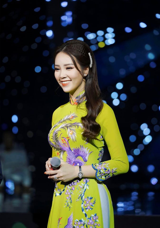 Á hậu Thuỵ Vân rạng rỡ với áo dài trên trường quay chương trình Chào Xuân 2020.