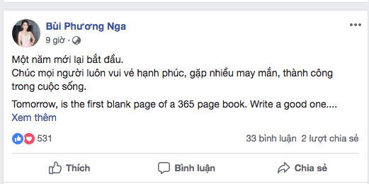 Á hậu Phương Nga náo nức đón năm mới trên trang facebook cá nhân.