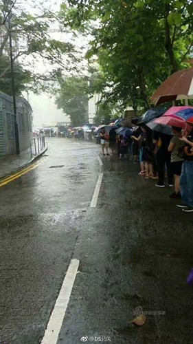 Bất chấp mưa to gió lớn, hàng nghìn người dân Hong Kong vẫn kiên nhẫn xếp hàng chờ mua vé lên thăm quan tàu sân bay Liêu Ninh của Trung Quốc khi chiếc hàng không mẫu hạm đầu tiên của Trung Quốc này cập cảng Hong Kong hôm 29/6 vừa qua. Nguồn ảnh: Sina.