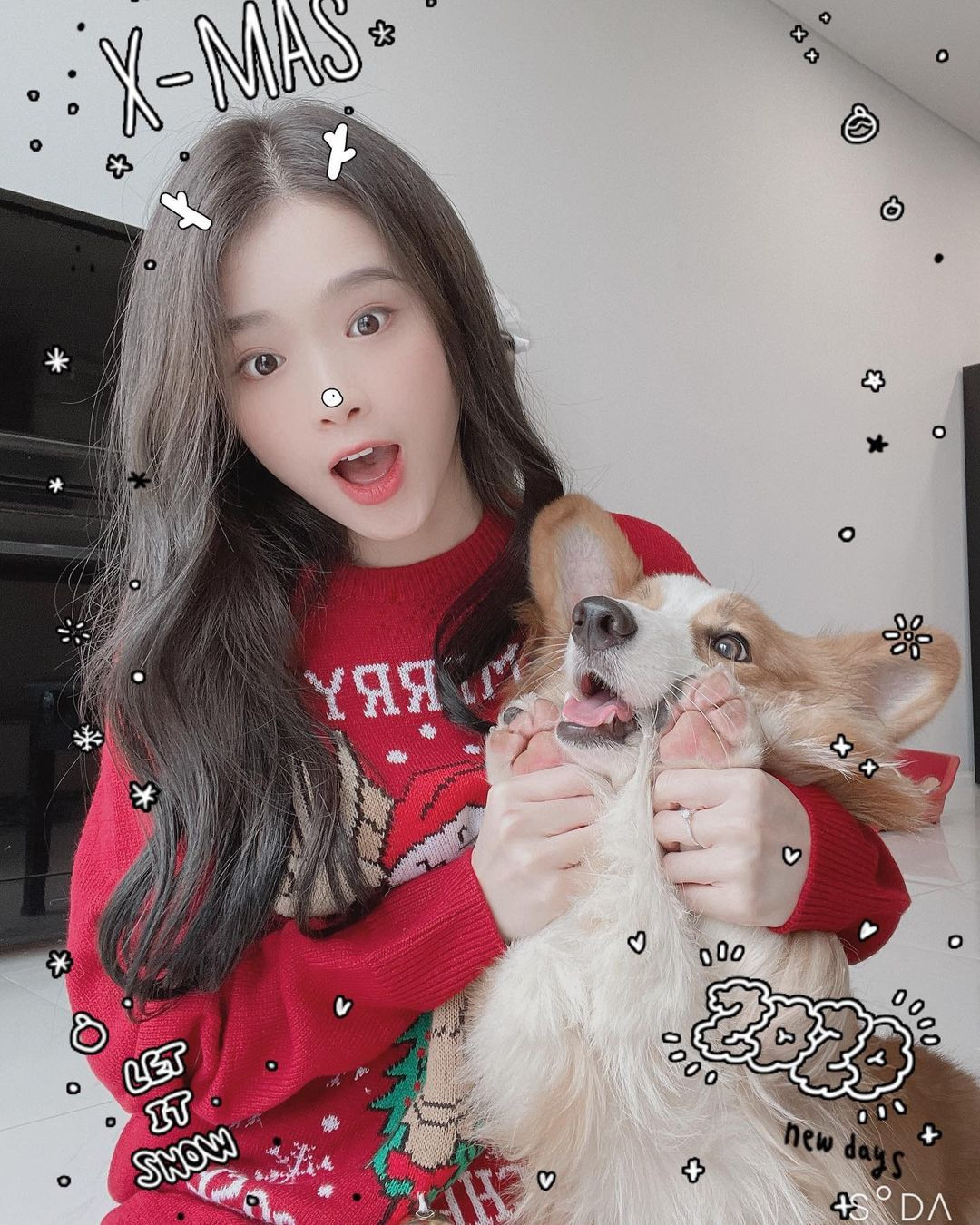 Vui đùa bên cún cưng, "hot girl 10X" Linh Ka xinh xắn trong ảnh đón Noel đang gần kề.
