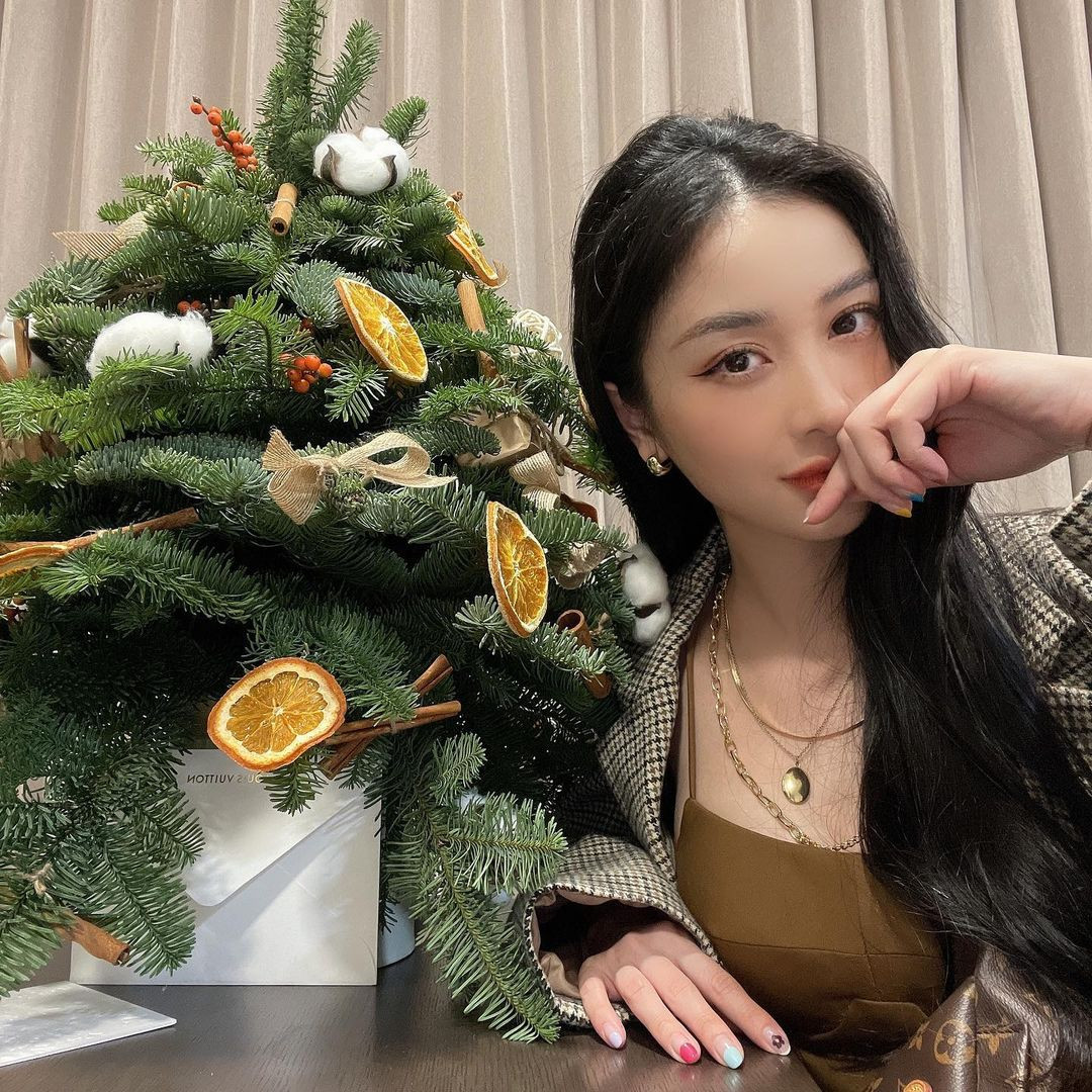 "Hot girl trà sữa" Jun Vũ khoe nhan sắc xinh đẹp bên cây thông Giáng sinh.