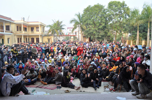 Hàng trăm người vây kín hội trường của UBND xã, thức qua đêm để đợi ông Chủ tịch ký vào văn bản. Họ cho hay sẵn sàng “ăn bánh mì, uống nước, sữa” chứ không rời đi. Trong khi đó, loa phát thanh xã do một phụ nữ đọc liên tục yêu cầu người dân giải tán và "trả tự do" cho ông chủ tịch.