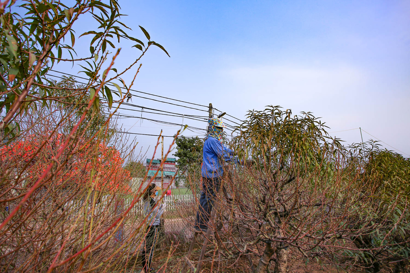 Một chủ vườn đào ở Nhật Tân cho biết, do thời tiết lại nên việc tuốt lá năm nay diễn ra chậm hơn so với mọi năm, với những lá đã ngả vàng thì việc tuốt trở nên dễ dàng hơn.