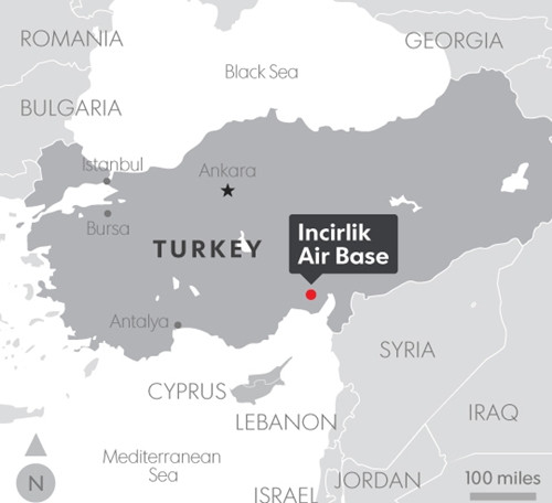 Vị trí căn cứ Incirlik, Thổ Nhĩ Kỳ. Đồ họa: USA Today.