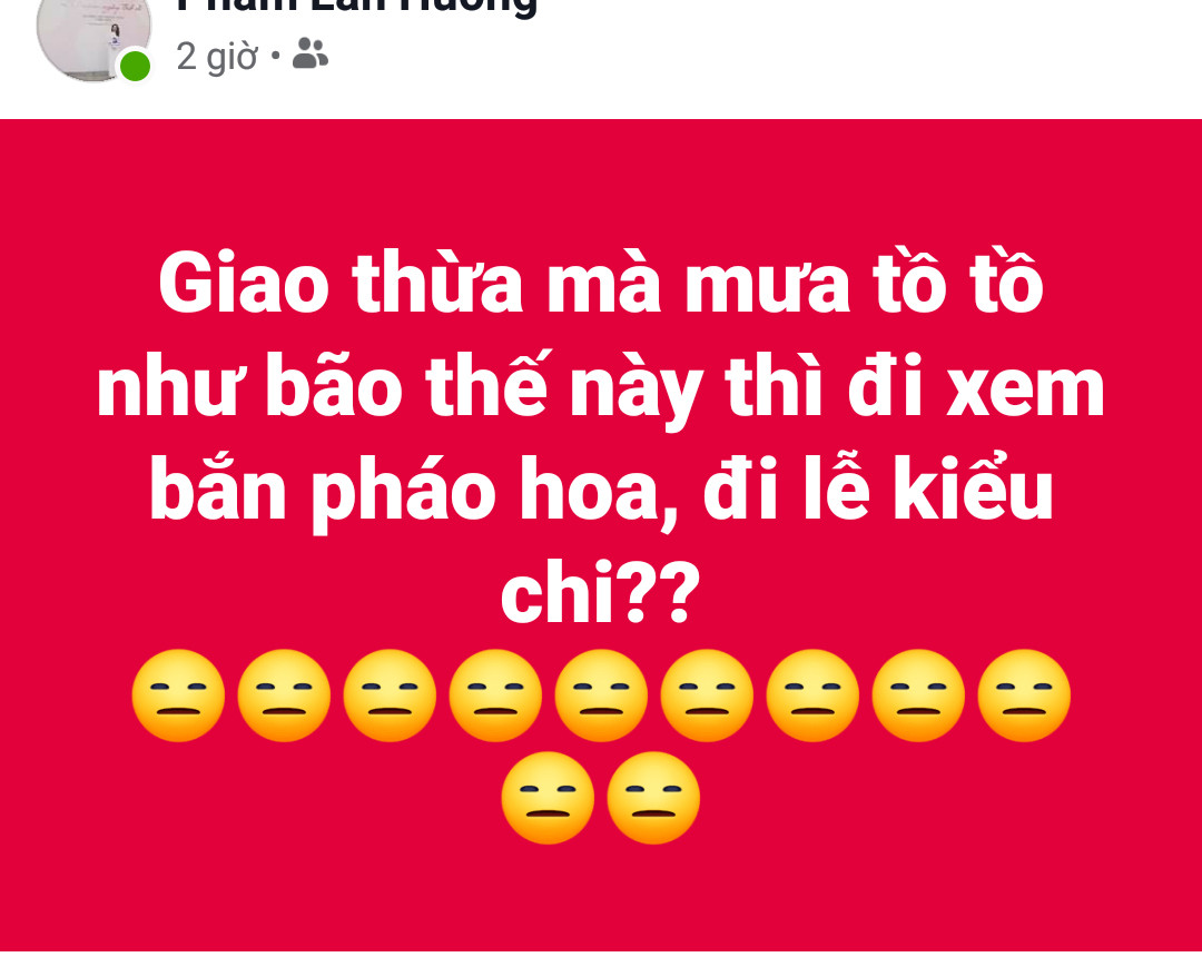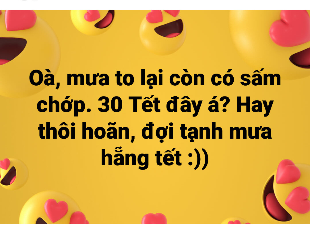 Có tài khoản thì thể hiện sự bất ngờ vì chưa bao giờ thấy đêm 30 Tết trời mưa to đến vậy.