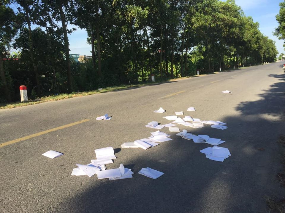 Cụ thể, bạn B.H.N chia sẻ trong lúc đi trên đường cao tốc vào sau ngày diễn ra kì thi môn Toán ở Hải Dương đã nhìn thấy rất nhiều sách vở bị xé hết bìa rồi vứt bừa bãi trên đường.