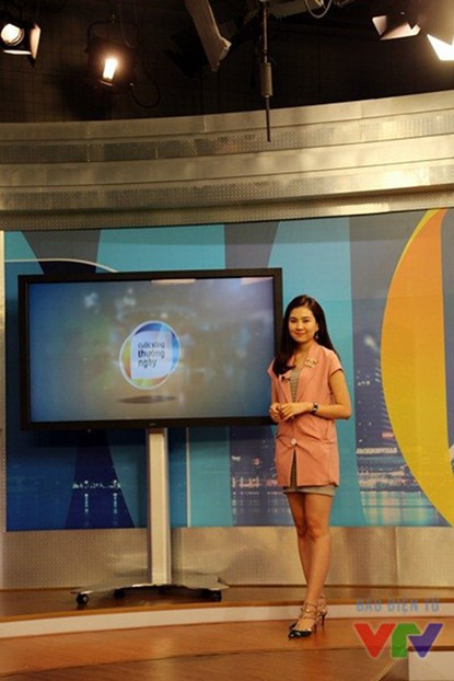 "Mỗi khi gắn chiếc huy hiệu VTV để chuẩn bị lên sóng, Chi cảm thấy đó là trách nhiệm cũng như phải hết mình trong công việc mình đang theo đuổi", nữ MC xinh đẹp nói.