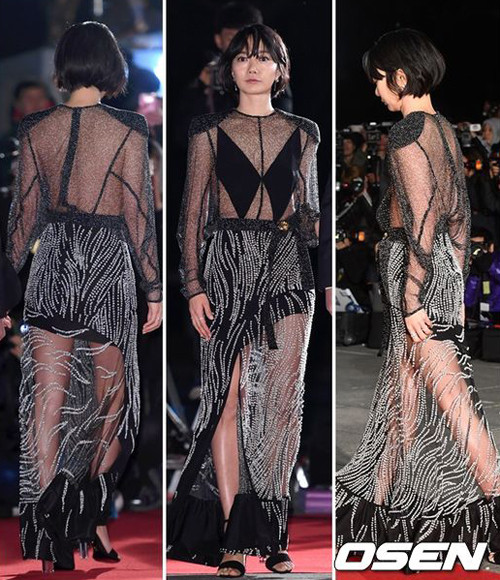 Diễn viên Bae Doo Na xuất hiện với đầm xuyên thấu cầu kỳ.