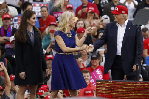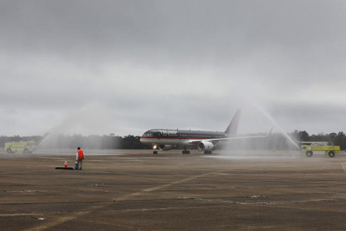 Khi máy bay của Trump hạ cánh xuống sân bay Mobile hôm qua, nó đã được hai xe tải phun vòi rồng để chào đón. Sau đó, khoảng 6 cô gái trẻ trong những chiếc váy chân phồng sặc sỡ đã chào mừng tổng thống đắc cử quay lại thành phố này.