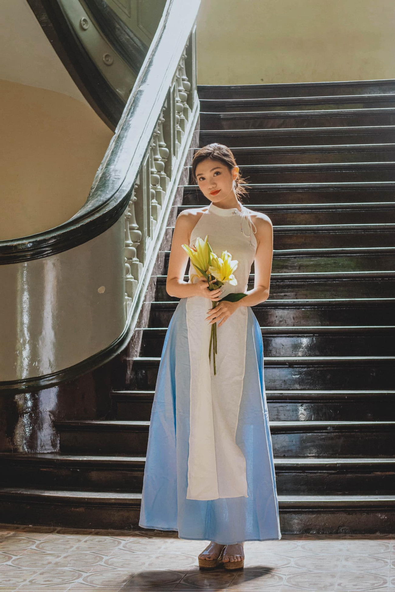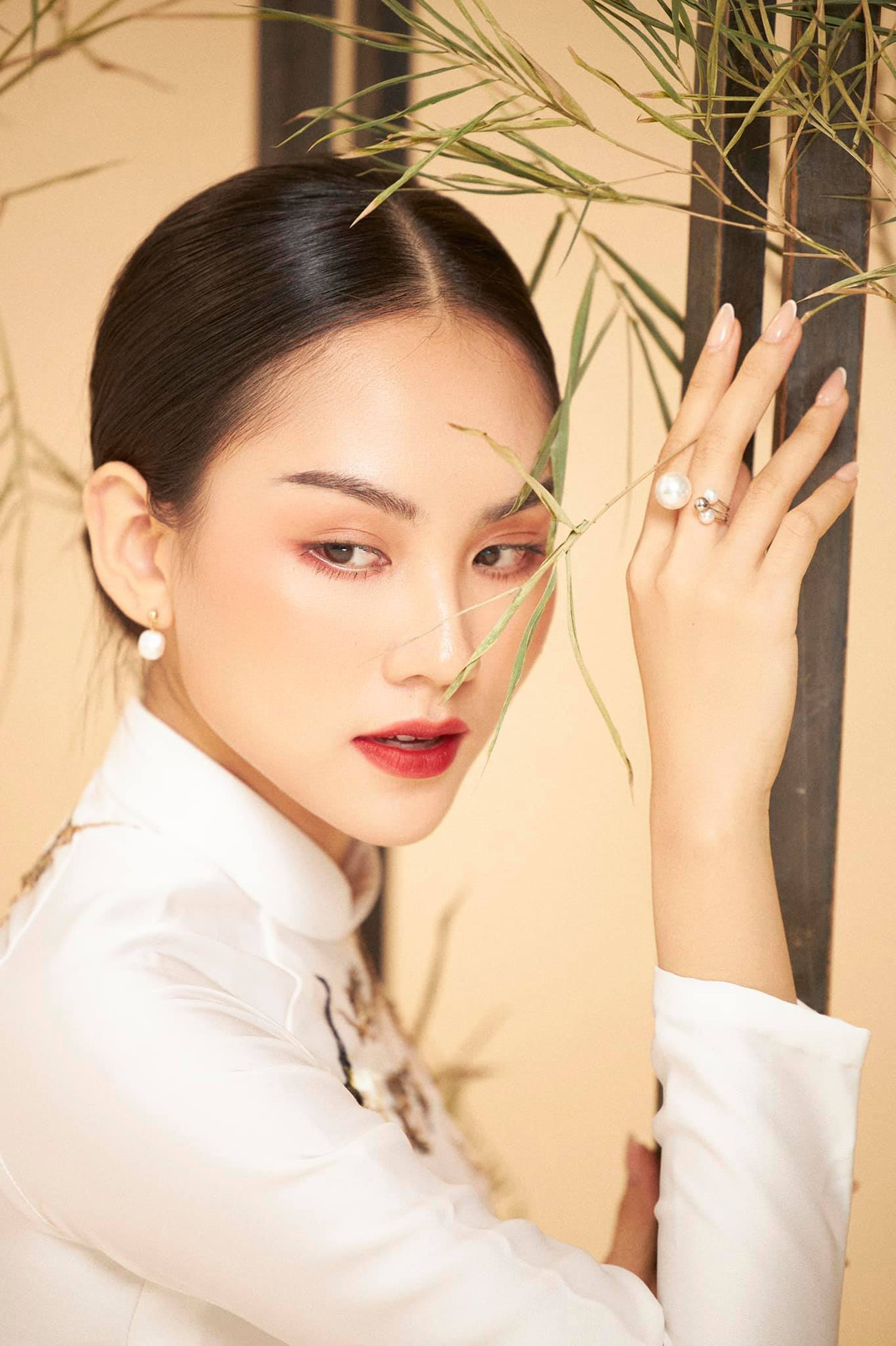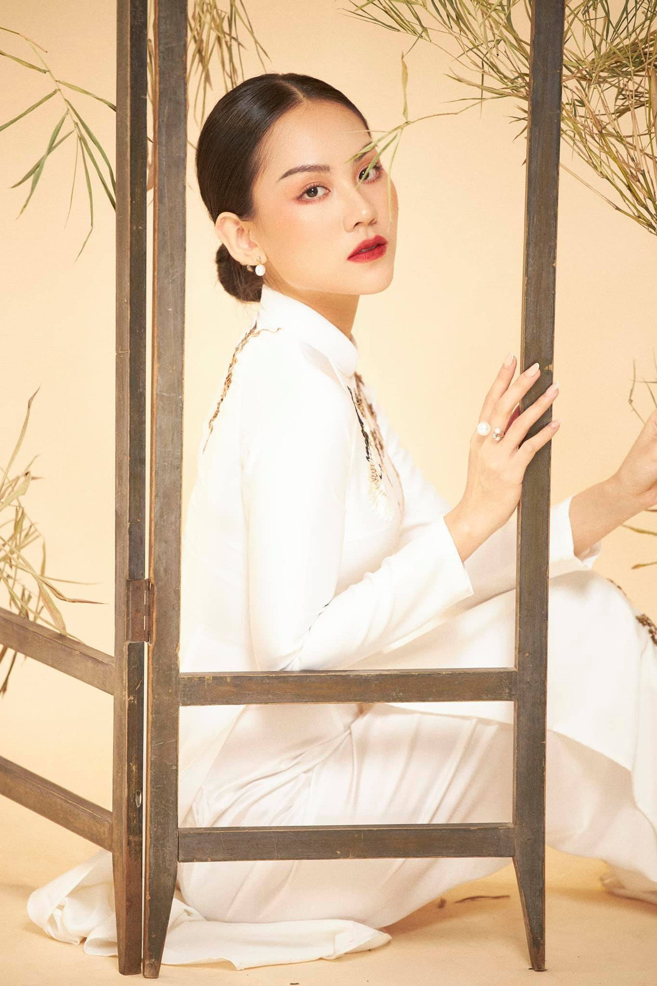 Người đẹp Nhân ái của cuộc thi HHVN 2020 đẹp như thiếu nữ trong tranh khi diện áo dài.