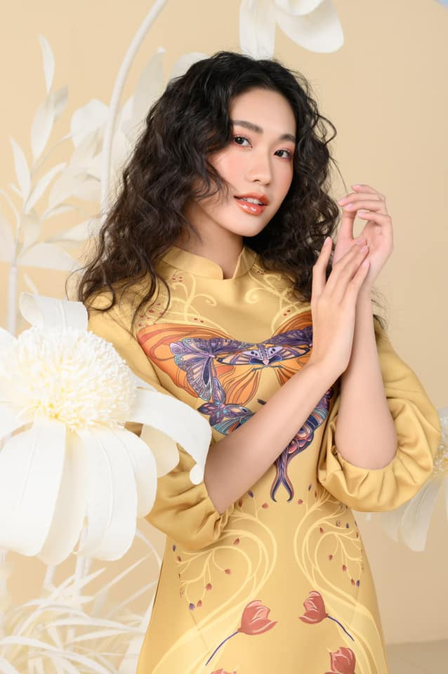 Người đẹp tài năng của cuộc thi HHVN 2020 - Doãn Hải My khoe nhan sắc xinh đẹp, trẻ trung trong những tà áo dài Tết họa tiết rực rỡ.