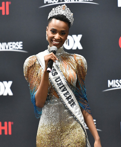 Một mỹ nhân da màu nữa đăng quang tại một cuộc thi nhan sắc lớn nhất nhì thế giới khác đó là Miss Universe 2019 Zozibini Tunzi. Zozibini là người da đen đầu tiên của Nam Phi đăng quang Hoa hậu Hoàn vũ, hai Hoa hậu Hoàn vũ người Nam Phi trước đó là người da trắng và người mang dòng máu lai.