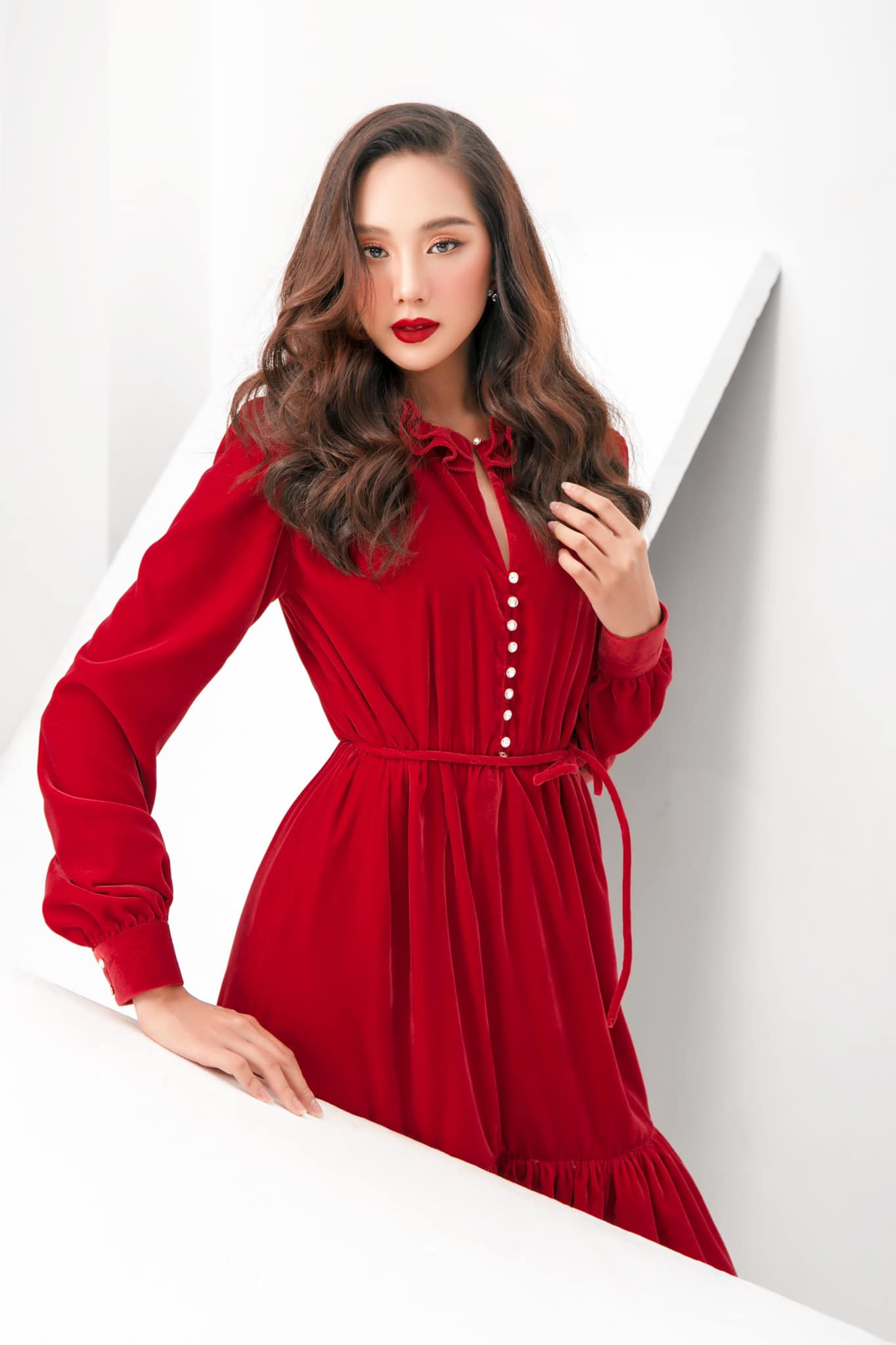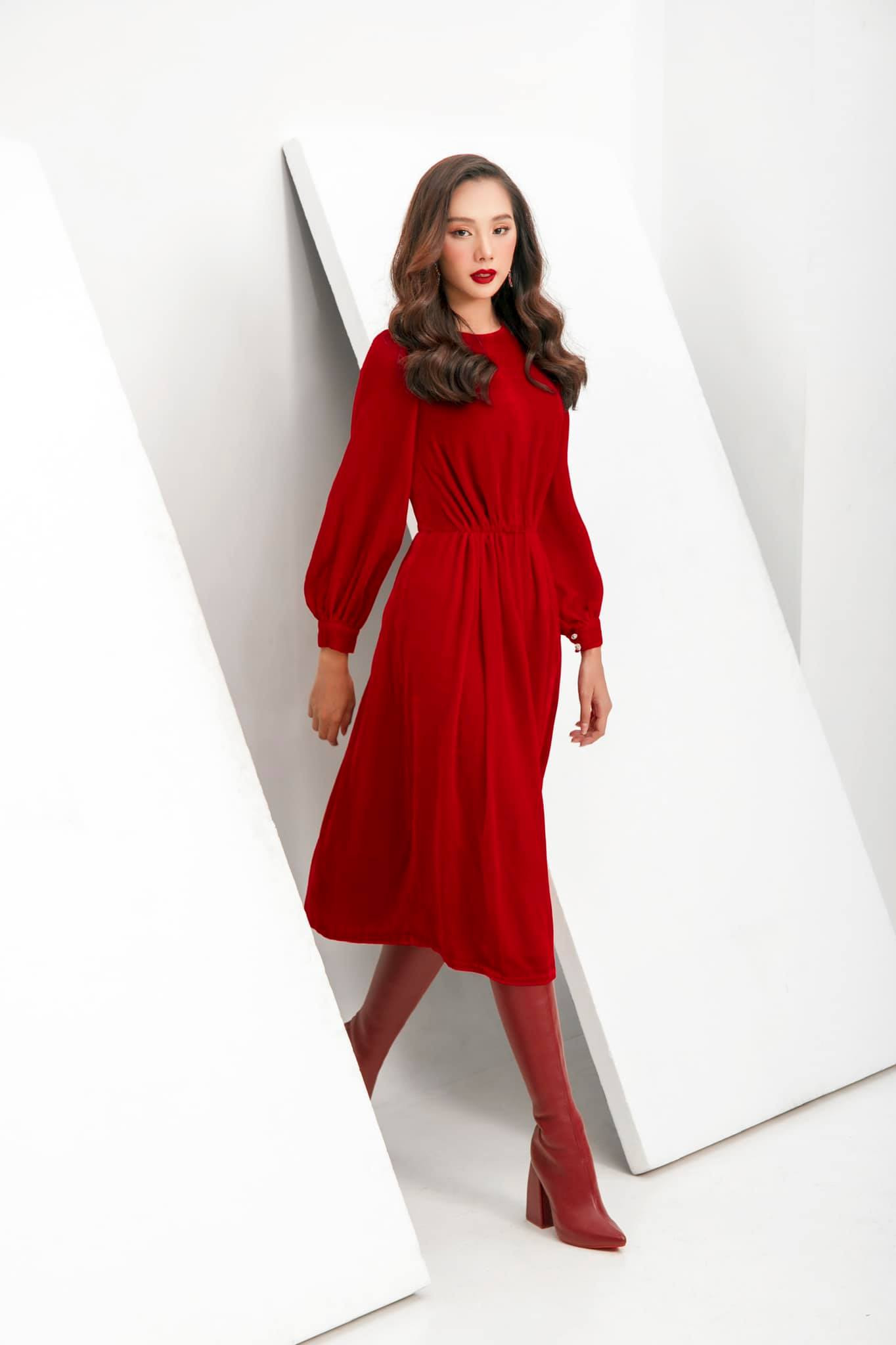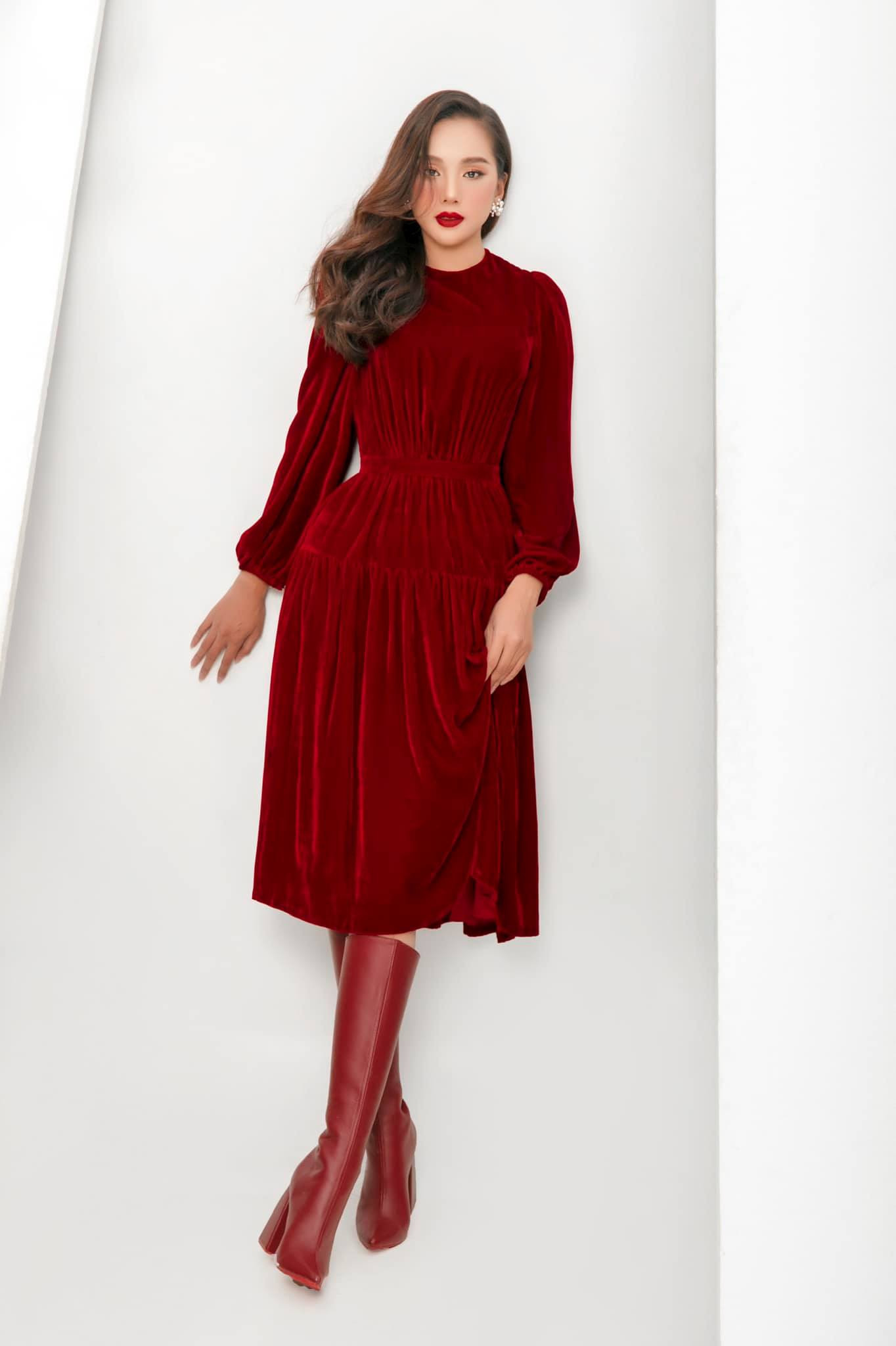 Top 5 Hoa hậu Việt Nam 2020 Phạm Thị Phương Quỳnh gợi ý lên đồ giáng sinh với tông màu đỏ là chủ đạo.
