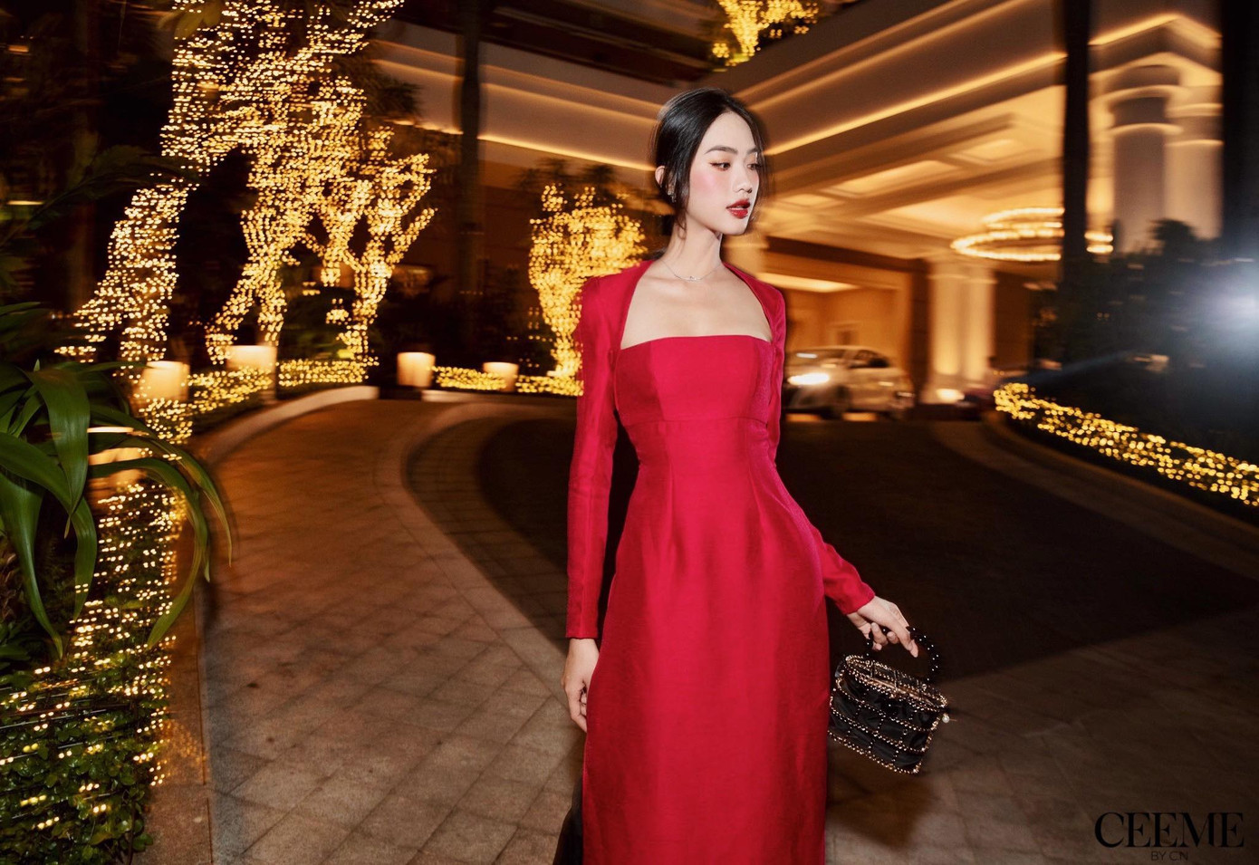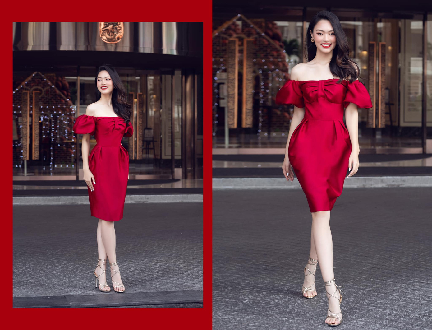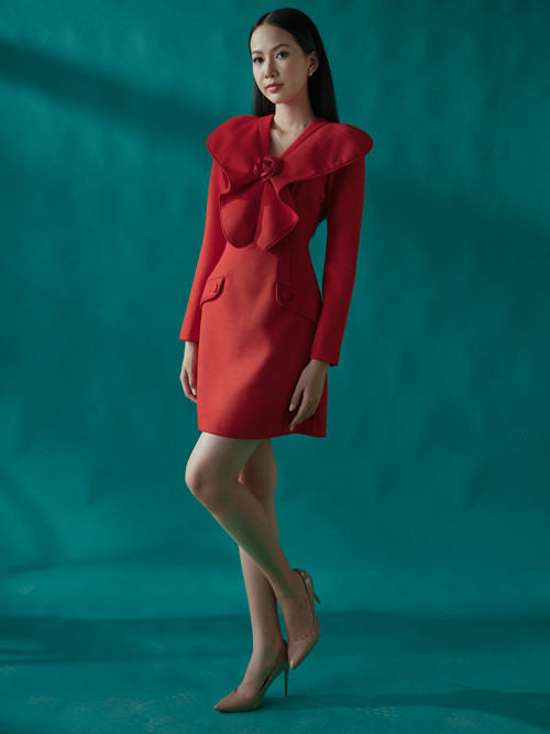 Top 5 Hoa hậu Việt Nam 2020 Phạm Thị Phương Quỳnh gợi ý lên đồ giáng sinh với tông màu đỏ là chủ đạo.