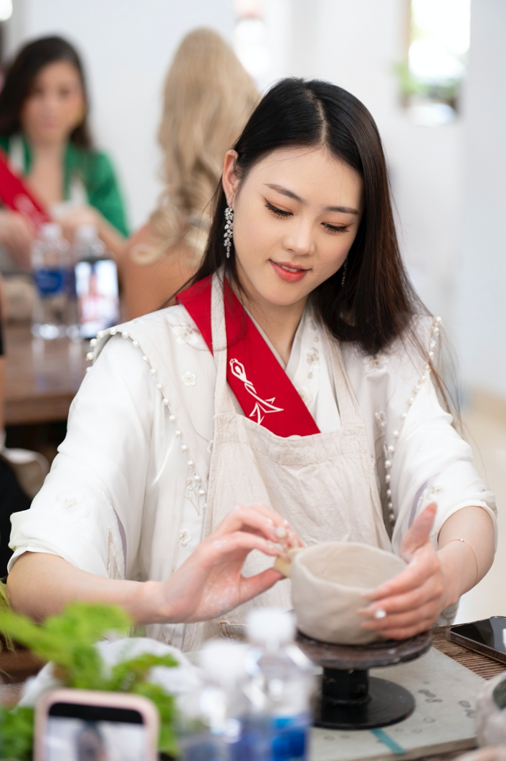 “Tôi đã có rất nhiều niềm vui khi được học làm gốm.”, thí sinh Olivia Tan (Indonesia). Người đẹp Olivia Dewi Cinta Higgins (Singapore) khoe thành phẩm cùng những người bạn và chia sẻ: “Hôm nay, tôi đã được tìm hiểu về lịch sử gốm Việt Nam, các kỹ thuật và cách chúng được kết hợp trong văn hóa. Cảm ơn vì trải nghiệm rất ý nghĩa này”.